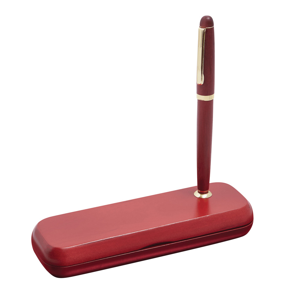 Edles Schreibset POET, 2-teilig: bestehend aus Kugelschreiber mit Drehmechanismus (blauschreibend) sowie Füllfederhalter mit Verschlusskappe mit Clip, Iridium-Point-Feder, inkl. 1 Tintenpatrone, beide Schreibgeräte mit Holz-Schaft und goldglänzendem Dekor, im Holzetui