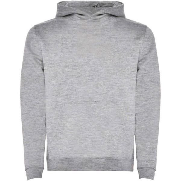 Zweifarbiger Kapuzenpullover mit doppeltem Stoff. Verstärkte und verdeckte Nähte am Kragen und an der Kängurutasche. Elastischer 1×1-Rippstrick an Ärmeln und Bund. Herausnehmbares Etikett. Das Modell ist 120 cm groß und trägt Größe 5/6.