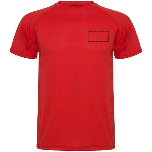 Kurzärmeliges Funktions-T-Shirtmit Raglanärmeln. Rundhalsausschnitt mit verdeckten Nähten. Seitenschlitze mit passender Überwendlingsnaht. Atmungsaktiver Stoff, leicht zu waschen und zu trocknen. Herausnehmbares Etikett. Technisches Gewebe. Ultravioletter Schutzfaktor.