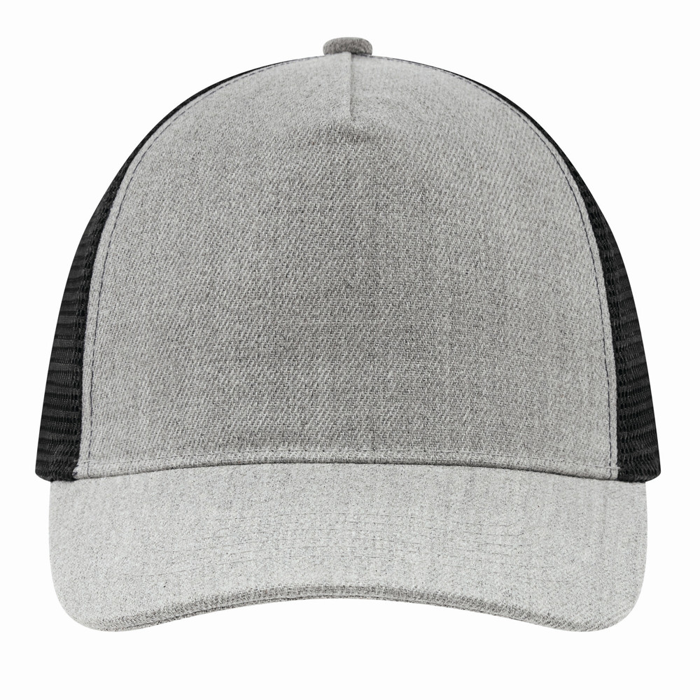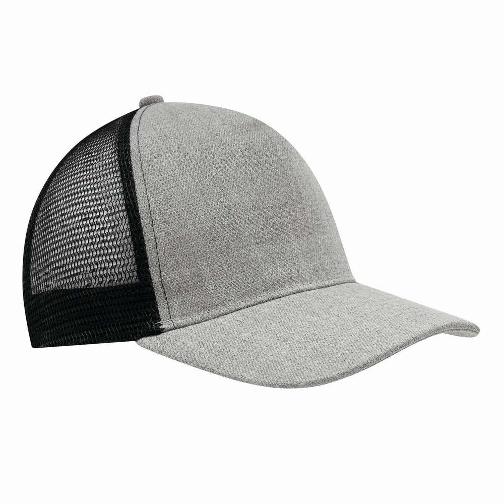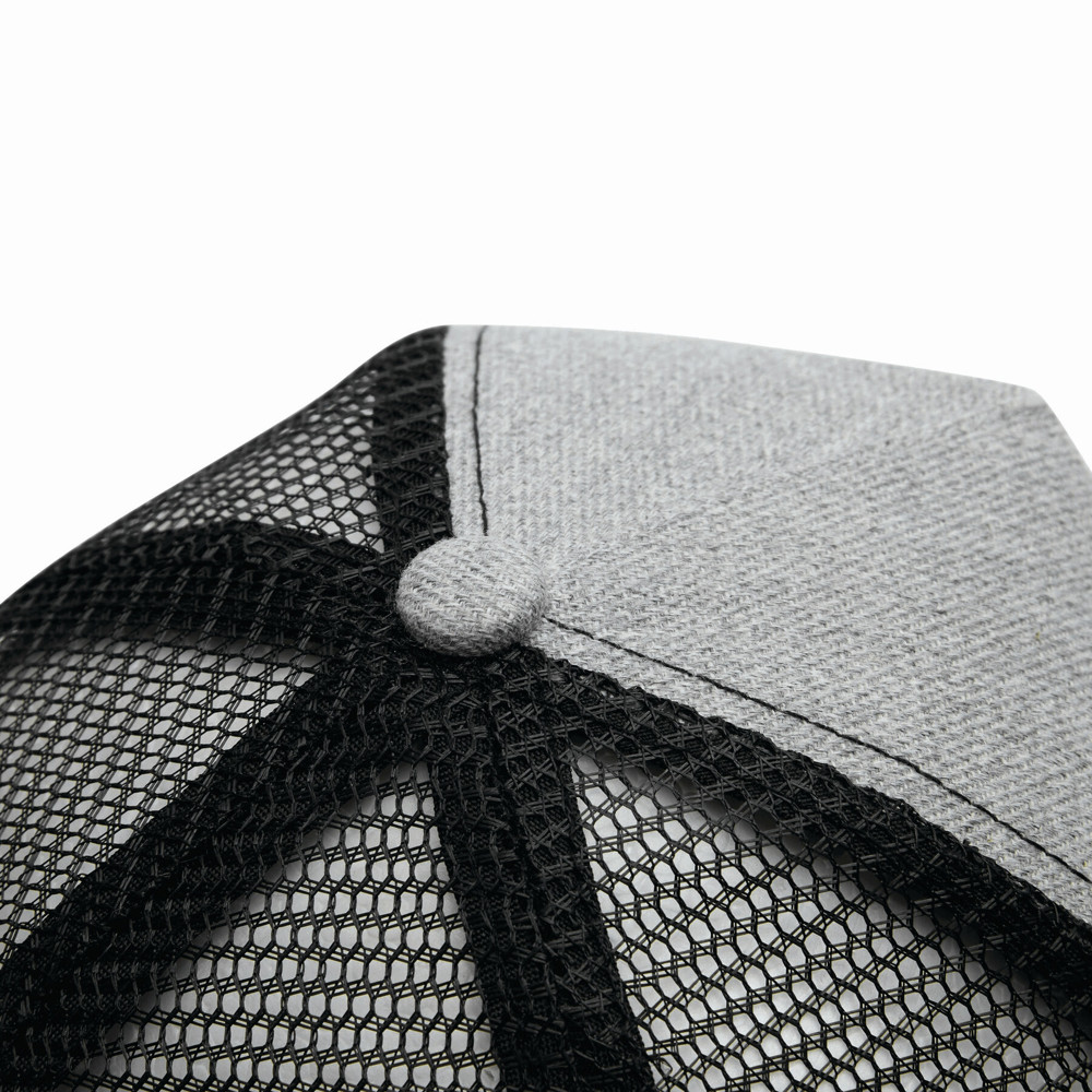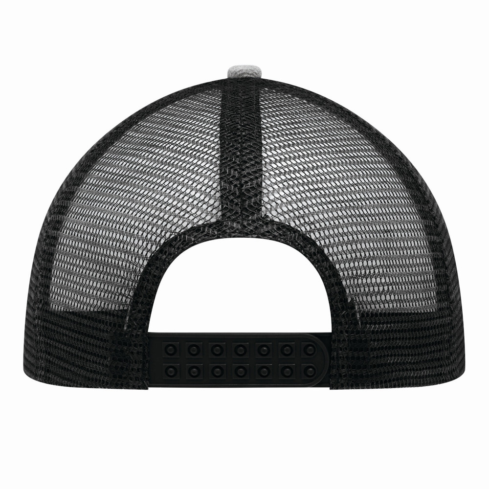 5-Panel-Baseball-Cap CASUAL FIT, 2-farbig: verstärktes, meliertes Frontsegment, übrige Segmente aus Netzstoff, Knopf, größenverstellbarer, doppelreihiger Kunststoffverschluss am Hinterkopf