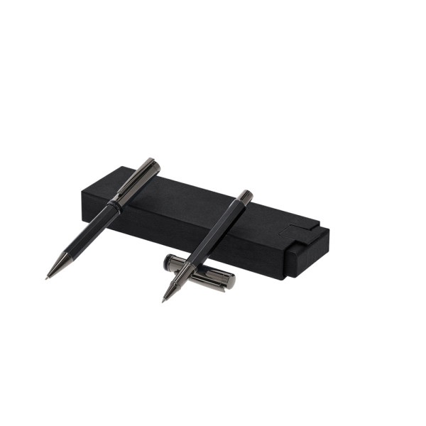 Exklusives Kugelschreiber- und Rollerball-Set von höchster Qualität aus der Limited Edition Kollektion. Ein modernes, funktionales und wunderschönes Accessoire, das alle Erwartungen übertrifft. Ausgezeichnet durch sein elegantes, minimalistisches Design. Hergestellt aus starkem, langlebigem Edelstahl, in perfekter Kombination mit Aluminium. Kugelschreiber mit raffiniertem Drehöffnungssystem und Rollerball mit praktischem Verschluss. Hexagonales Griffdesign in matten Metallic-Farben und einem schlichten, anthrazitglänzenden Oberteil. Mit Metallclip, blauer Tinte und nachfüllbar (Rollerball mit Jumbo-Patrone).Aus der perfekten Kombination von Exklusivität und Design entsteht Limited Edition, eine spezielle Kollektion von Werbeideen in limitierter Auflage. Ein neues Konzept, inspiriert von der Fusion von Premium-Produkten mit den neuesten und innovativsten Trends und mit einer begrenzten Auswahl, die ein Geschenk in eine einzigartige und unvergessliche Erfahrung verwandelt.Exklusive Limited Edition Präsentationsbox, mit einem durch gewerbliche Schutzrechte geschützten Design.Inklusive Karte mit Beschreibung der Limited Edition auf recyceltem Karton.