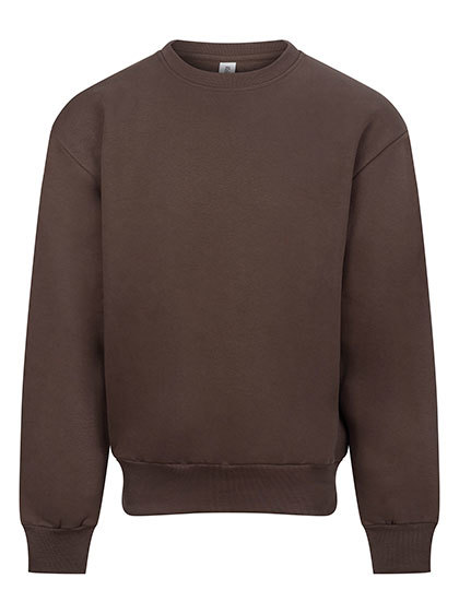 Ringgesponnene Baumwolle / recycelter Polyester | 100 % Baumwoll-Obermaterial | Oversized-Passform | Schweres Material | Rundhalsausschnitt | Gerippter Kragen, Bündchen und Saum | Eingesetzte Ärmel | Gebürstetes Innenvlies | Abreißetikett