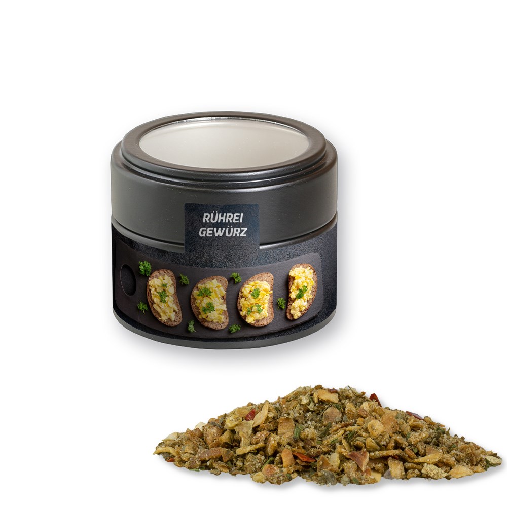 Gewürzmischung Rühreigewürz, ca. 60g, Metalldose Mini mit Sichtfenster schwarz