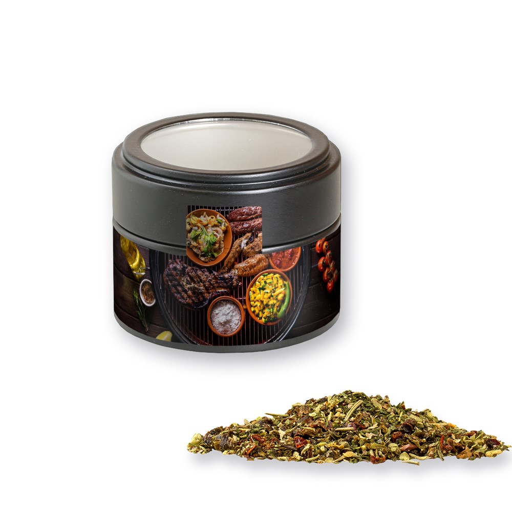 Gewürzmischung Steakgewürz, ca. 60g, Metalldose Mini mit Sichtfenster schwarz