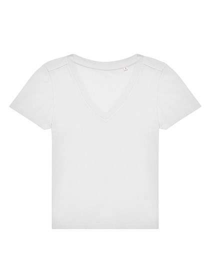 100% einlaufvorbehandelte, ringgesponnene Baumwolle | Single-Jersey | Klassische moderne Passform | Mit Seitennaht | Femininer Ausschnitt mit verstärktem V | Nackenband für sauberen Abschluss | Vorverlegte Schulternähte | Kein Label | Widerstandsfähiges Material mit weichem Griff