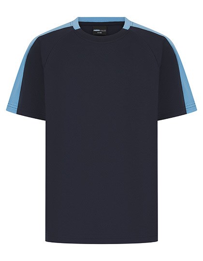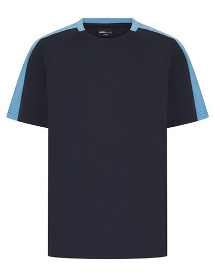 Single-Jersey | Material mit feuchtigkeitsregulierender Oberfläche | 2-teiliger Kontrastkragen | Crewneck | Raglan-Ärmel | Seitliche Kontrasteinsätze aus dem gleichen Stoff am Ärmel | Abreißetikett