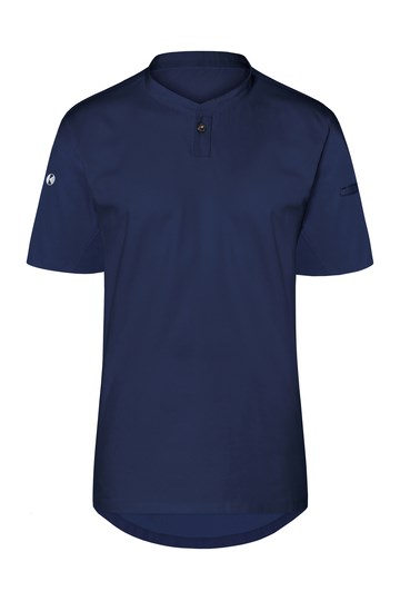 Vorderseite: Köpergewebe; Rückseite: Jersey-Piqué, atmungsaktiv und feuchtigkeitsregulierend | Modernes Arbeitsshirt mit kurzen Ärmeln im sportlich edlem Look | Tailliert geschnitten | Hohe Waschbarkeit | Halsausschnitt mit schmalem Stehkragen und kleiner Knopfleiste | Leistentasche am linkem Ärmel