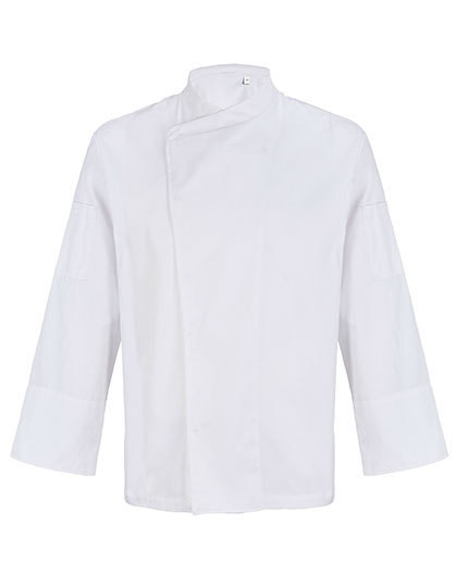 Recycelter Polyester | Lange Ärmel | Breite Manschetten mit Schlitz | Aufgesetzte Tasche mit zwei Fächern am linken Arm | Seitennähte hinten | Vordere Öffnung mit Druckknöpfen auf der rechten Seite | Atmungsaktive Einsätze an den Armausschnitten