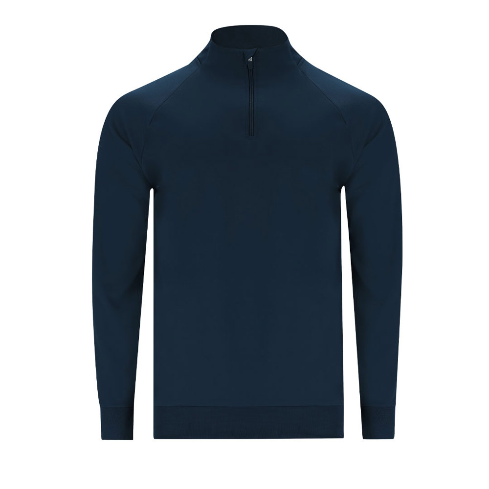 Technischer Hoodie aus gebürstetem Innenmaterial, der Wärme und Weichheit bietet. Mit Raglanärmeln und einem Kragen mit halbem Reißverschluss sowie verstärktem, farblich abgestimmtem Nähte. Der hintere Kragen, die Bündchen und der Saum sind aus 1x1-Rippstrick für einen bequemen Sitz gefertigt. Enthält seitliche Nähte.