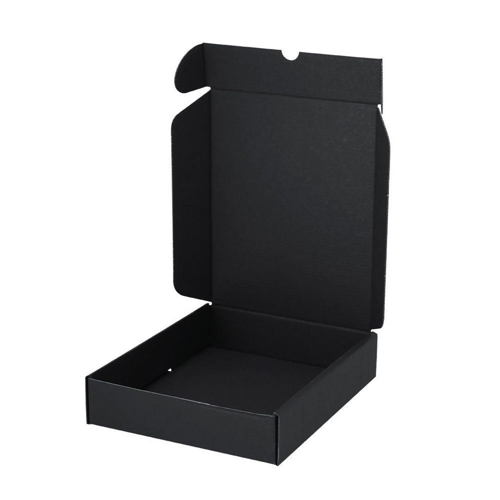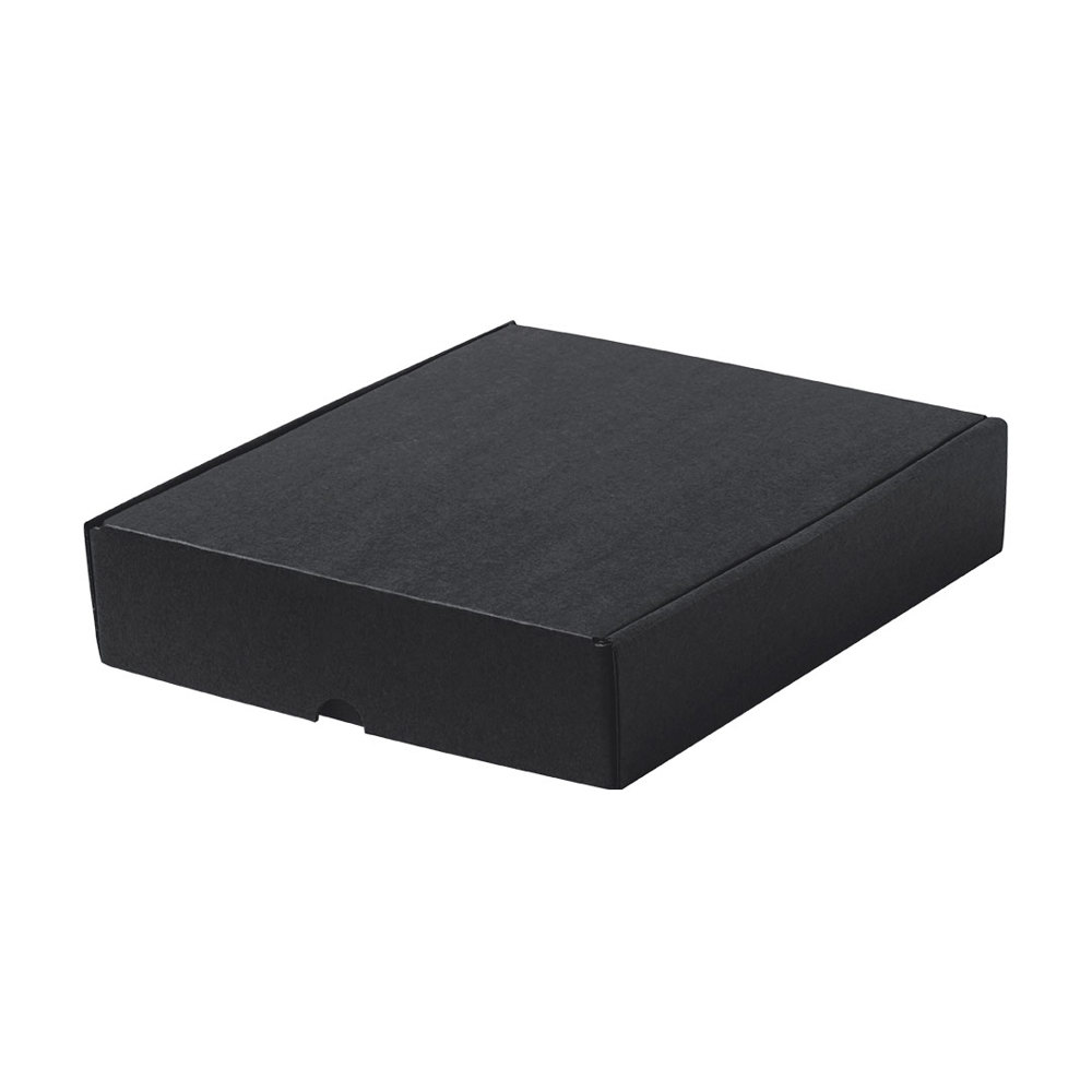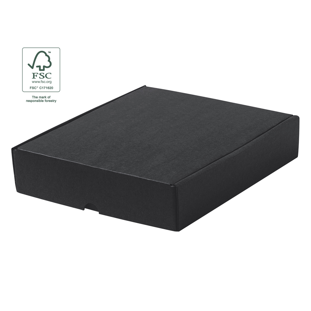 Präsentationsbox mittlerer Größe aus schwarzem Wellpappe. Im Einklang mit dem Marktentwicklungsziel der ganzheitlichen Nachhaltigkeit von Geschenken, die Lösungen bietet, um zur Verbesserung und Erhaltung unseres Planeten beizutragen.