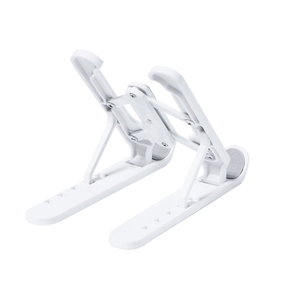 Faltbarer Tablet-Ständer. Hergestellt aus widerstandsfähigem ABS mit rutschfesten Schutzmaßnahmen für einen festen Halt am Gerät in Grau. Höhenverstellbar in 5 Positionen und kompakt zusammenklappbar.