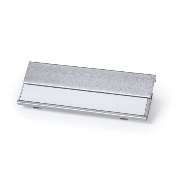 Aluminium-Namensschild in lebendigen Farben mit Befestigungsnadel auf der Rückseite. mehr