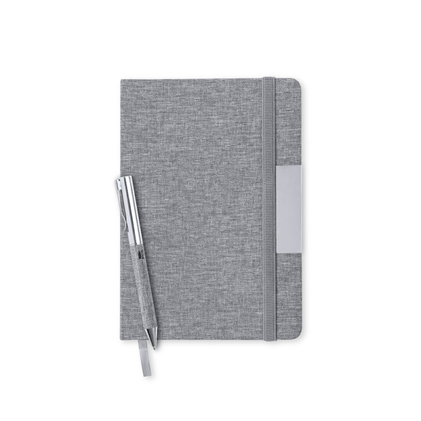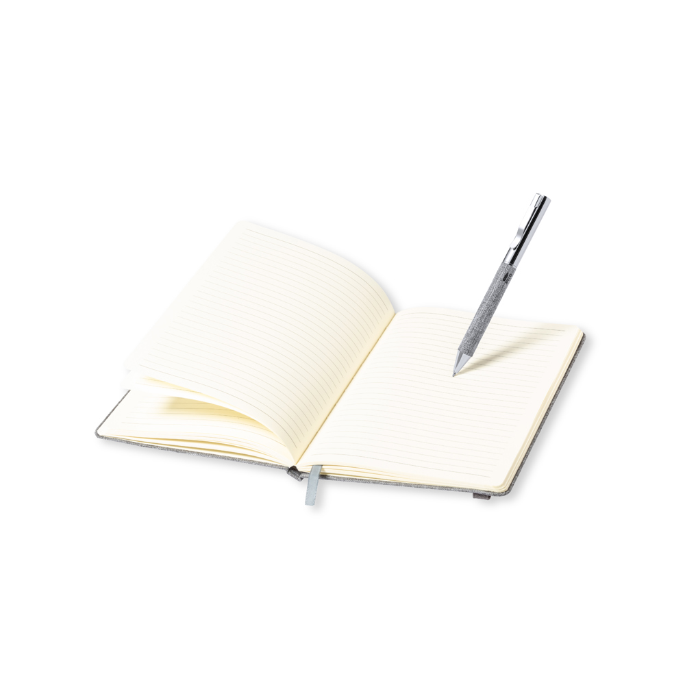 Set mit Notizbuch und Kugelschreiber aus RPET, hergestellt aus recyceltem Kunststoff, um die... mehr