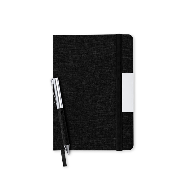 Set mit Notizbuch und Kugelschreiber aus RPET, hergestellt aus recyceltem Kunststoff, um die... mehr