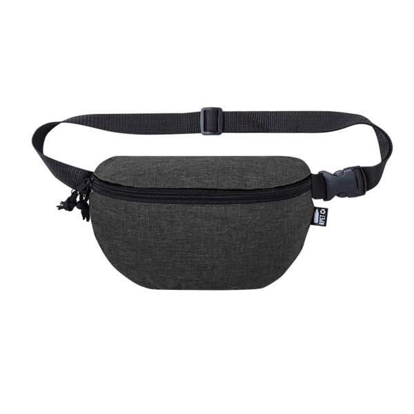 Nature Line Gürteltasche aus widerstandsfähigem 600D RPET mit Melange-Effekt. Hergestellt aus recyceltem Kunststoff, um die Wiederverwendung von Kunststoffabfällen zu fördern und einen Beitrag zur Nachhaltigkeit des Planeten zu leisten. Hauptfach mit Reißverschluss und verstellbarem Riemen mit Schnallenverschluss. Entwickelt für Sport- und Freizeitaktivitäten, mit RPET-Plakette auf dem Außenetikett.