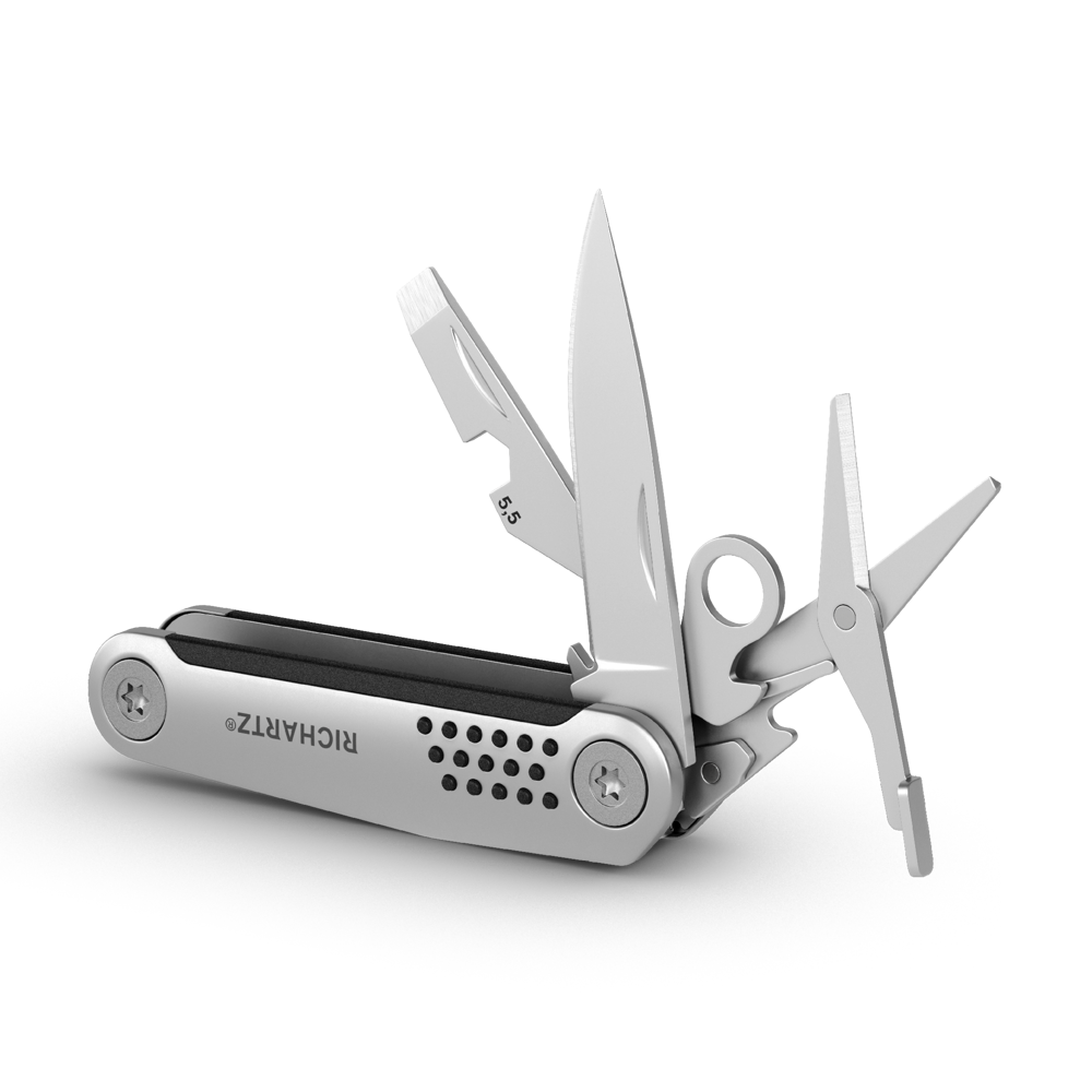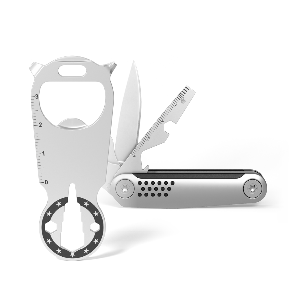 Zwei Produkte, die jeden entspannt durch den Tag bringen. STRUKTURA knife 8+ mini, unser nützliches Multifunktionsmesser für die Tasche und KEY TOOL shop, das schlüsselgroße Tool mit 14 Funktionen für den Schlüsselbund, sind so klein und doch jeder Aufgabe gewachsen. Perfekt verarbeitet und aus matt gestrahltem Edelstahl gefertigt. Ein Set, der jeden Tag Freude macht.