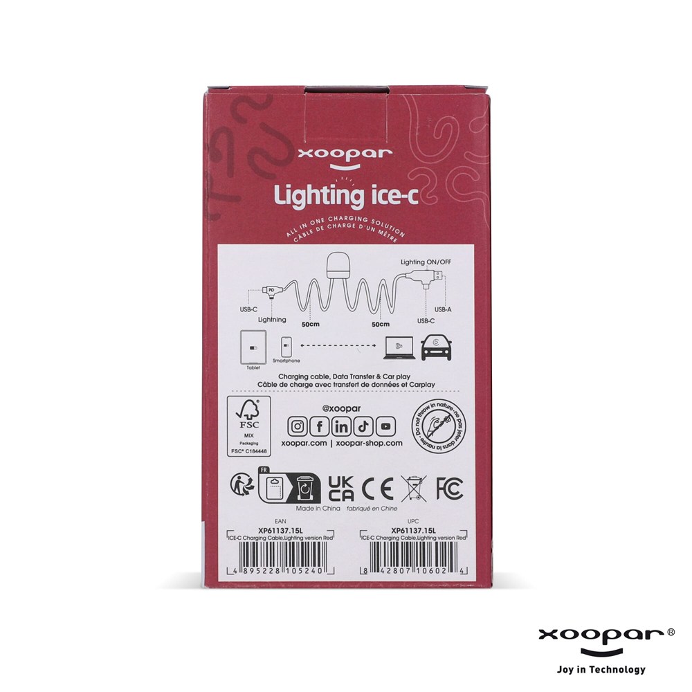 Die Xoopar Light up Ladekabel ist 2x 50cm lang, perfekt für nahtloses Laden und CarPlay-Funktionalität. Dualer Ein-/Ausgang, bis zu 27W Schnellladen. LED-Geschwindigkeit zeigt die Ladezeit an. Aus recyceltem Kunststoff.