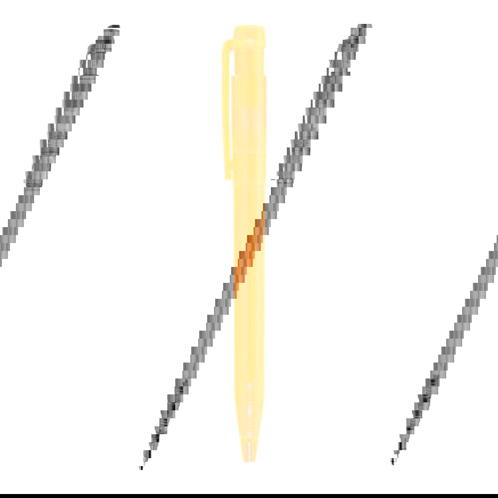 Schlanker transparenter Kugelschreiber in ansprechenden Farben. Ein schöner Werbeartikel wegen seiner Druckfläche. Mit synthetischer blau schreibender X20-Refill-Mine. Druckkugelschreiber aus ABS, hergestellt in Europa. Ab einer Abnahmemenge von 5.000 Stück sind eigene Farbkombinationen möglich.