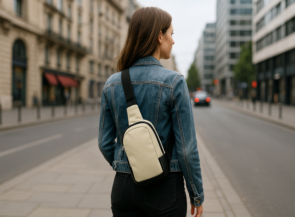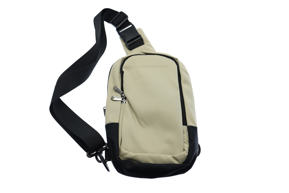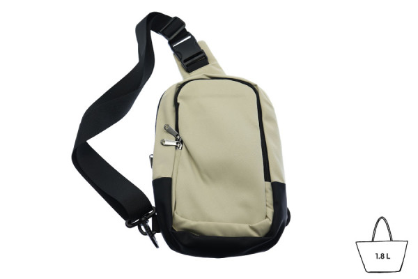 Die Vorteile in Kürze: - Verwendung von Polycotton, das für seine hohe Widerstandsfähigkeit über einen langen Zeitraum, seine Pflegeleichtigkeit und seine geringe Neigung zum Knittern bekannt ist. - Breiter Schulterriemen aus Nylon und Verstärkung aus Kunstleder unter der Tasche für mehr Langlebigkeit. - Kann dank der 2 seitlichen Ringe links oder rechts getragen werden. - Dezenter beigefarbener Look, der zu jedem Stil passt.