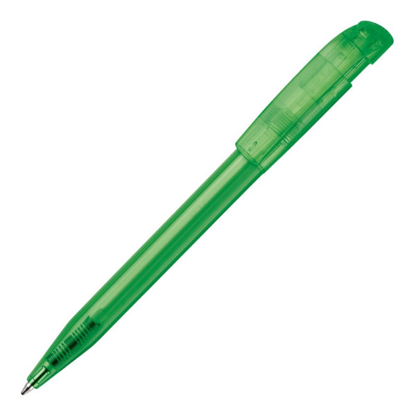 Moderner transparenter Kugelschreiber mit gebogenem Clip. Ein beliebter Werbeartikel wegen seiner... mehr