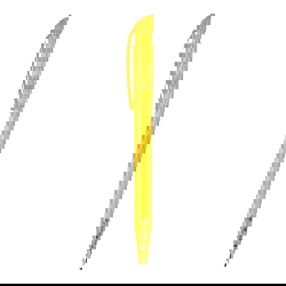 Moderner transparenter Kugelschreiber mit gebogenem Clip. Ein beliebter Werbeartikel wegen seiner... mehr