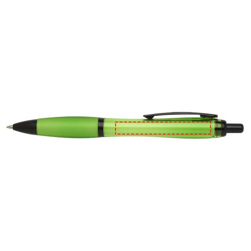 Der Nash Kugelschreiber in der Black Edition hat ein stilvolles, geschwungenes Design mit schwarzen Akzenten und hergestellt aus RCS-zertifiziertem recyceltem Kunststoff zur Reduzierung von Neumaterialien. Dank des schnellen Klickmechanismus ist der Kugelschreiber sofort einsatzbereit. Der weiche Griff verringert die Belastung beim Schreiben. Tintenfarbe: Schwarz. Schreiblänge: 1000 Meter. Schreibspitze: 1,0 mm.
