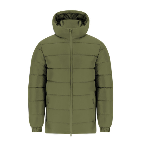 Kinder Unisex-Steppparka mit fester Kapuze und integrierter Krempe. Mit farblich abgestimmtem Frontreißverschluss mit Doppelzipper und Kinnschutz, elastischen Bündchen für bequemen Sitz sowie zwei Seitentaschen mit passendem Reißverschluss. Mit Innenzugang für Branding auf der linken Brust und dem Rücken, ideal zur Personalisierung.