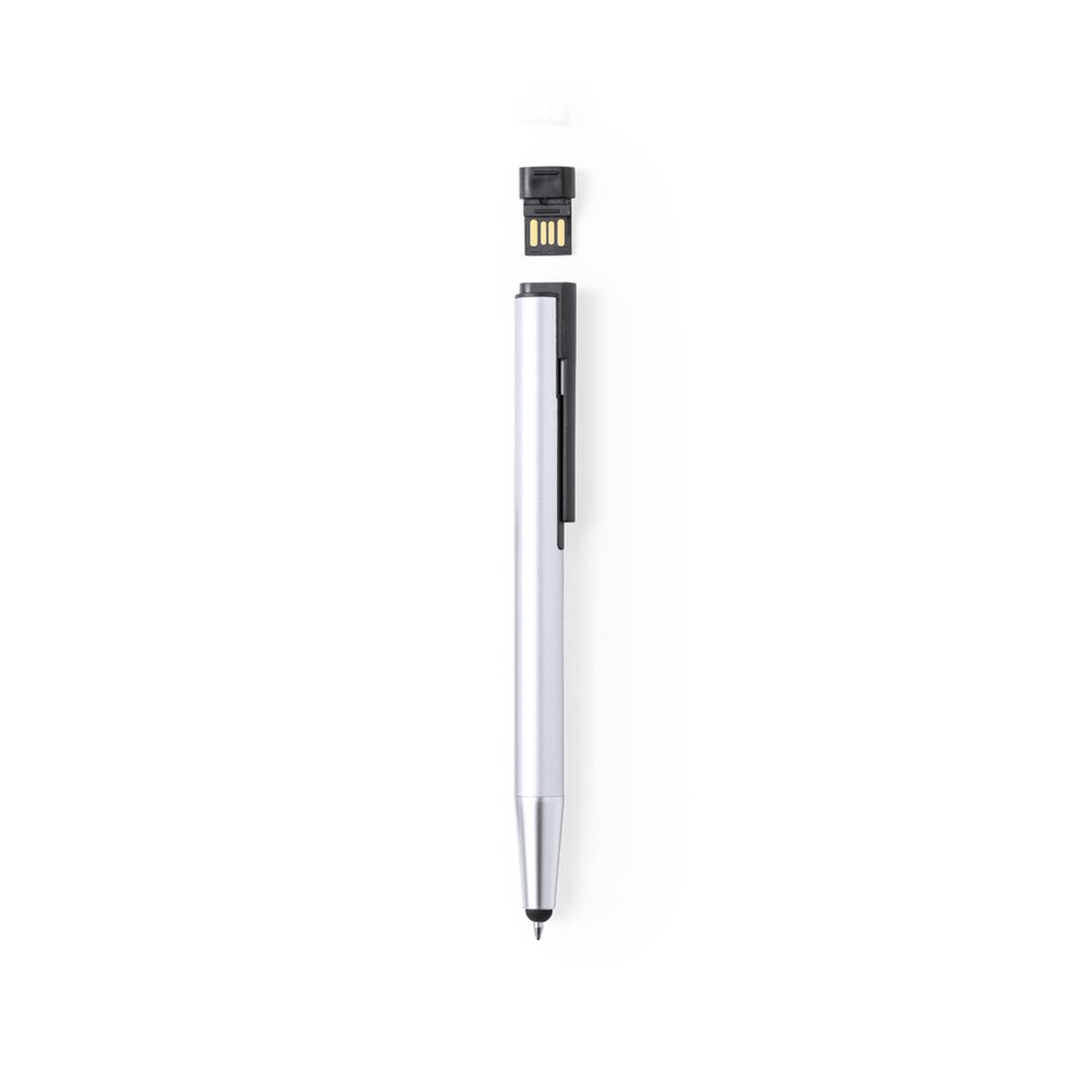 USB-Kugelschreiber aus robustem Aluminium mit glänzender Oberfläche. Mit oben integriertem 16GB USB-Speicherstick und schwarzem Clip. Druckknopfmechanismus, mit Jumbo-Patrone und blauer Tinte. Präsentiert in einer individuellen Blackbox.