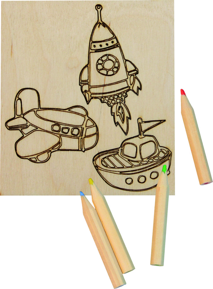 Nach Lust und Laune ausmalen. 3 Motive gelasert auf einer 3mm Birkensperrholzplatte (naturbelassen), die auch herausgebrochen werden können. Inklusvie 4-teiligen Buntstiftset. Verpackt in einer Papiertüte.