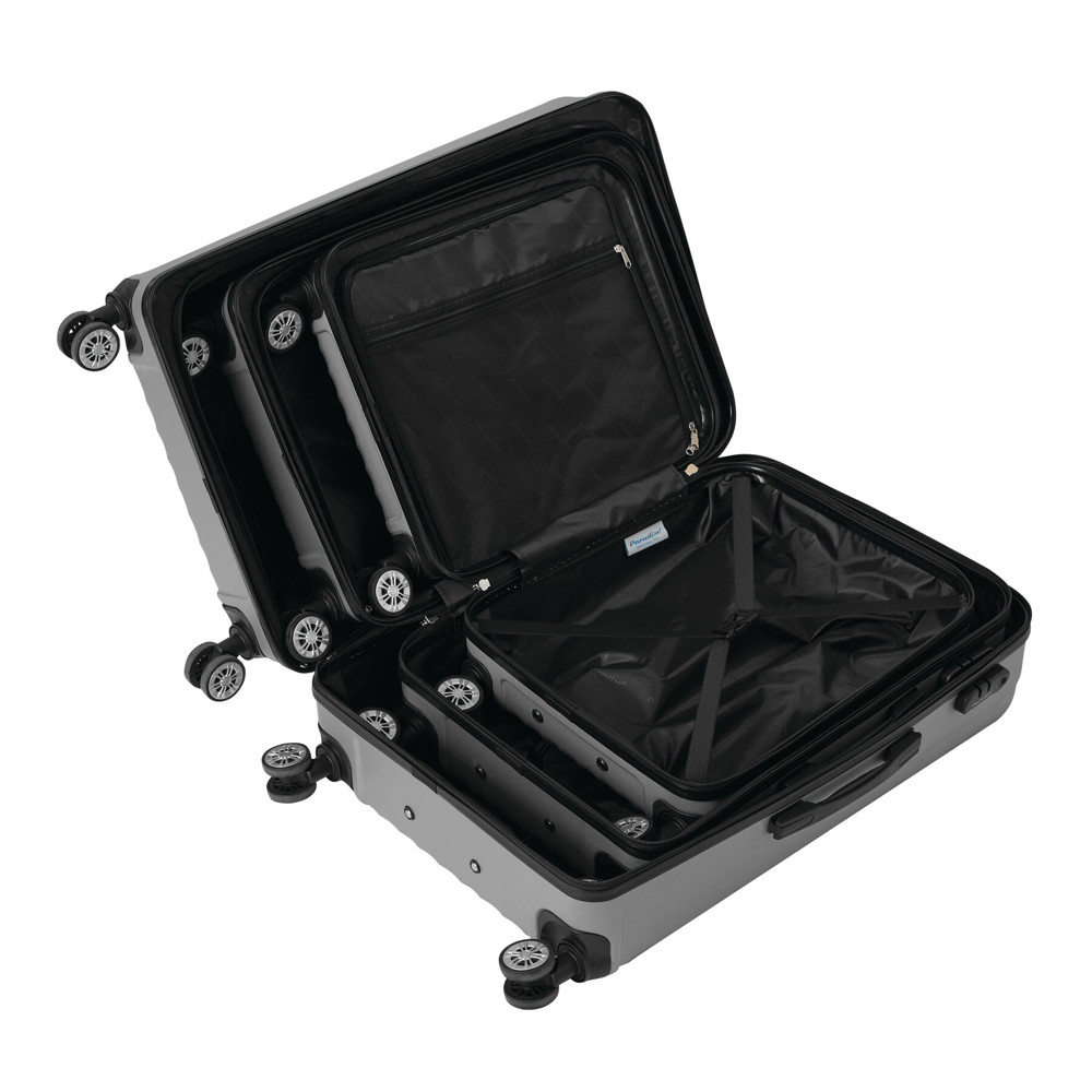 Trolley-Set KINGSTON, 3-teilig: beidseitige Packmöglichkeit, Innenraum mit Raumteiler und Packgurt, Größe XS mit zusätzlichem Netzfach, arretierbares Druckknopf-Trolleysystem, 4-Zwillingsrollen-360°-rundum-Leichtlauf-Fahrwerk, Größe L + XL inkl. Zahlenkombinationsschloss