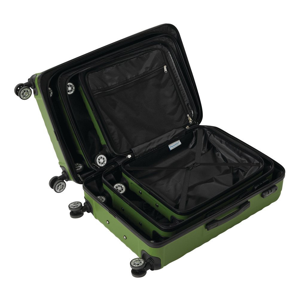 Trolley-Set KINGSTON, 3-teilig: beidseitige Packmöglichkeit, Innenraum mit Raumteiler und Packgurt, Größe XS mit zusätzlichem Netzfach, arretierbares Druckknopf-Trolleysystem, 4-Zwillingsrollen-360°-rundum-Leichtlauf-Fahrwerk, Größe L + XL inkl. Zahlenkombinationsschloss