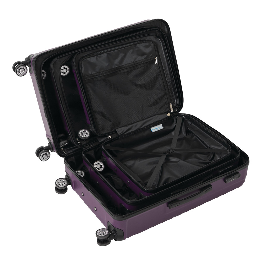 Trolley-Set KINGSTON, 3-teilig: beidseitige Packmöglichkeit, Innenraum mit Raumteiler und Packgurt, Größe XS mit zusätzlichem Netzfach, arretierbares Druckknopf-Trolleysystem, 4-Zwillingsrollen-360°-rundum-Leichtlauf-Fahrwerk, Größe L + XL inkl. Zahlenkombinationsschloss