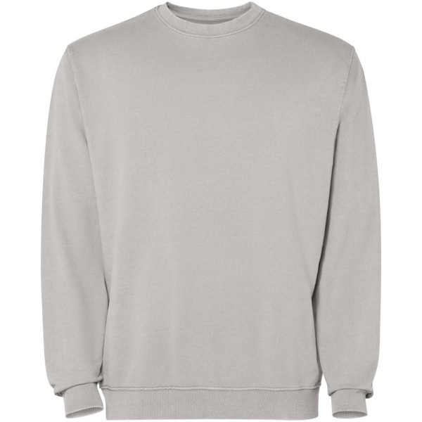 Unisex Pullover mit Acid-Wash-Finish. 2x1 gerippter Kragen, Bündchen und Saum in Ton-in-Ton. Verstärkte Nähte an Bündchen, Saum, Bund und Armausschnitten. Ton-in-Ton Abdeckstich am Hals.