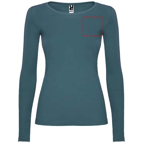 Langärmeliges, halb tailliertes T-Shirt mit feinem Halsbündchen. Keine Ärmelbündchen. Seitennähte. Herausnehmbares Etikett.