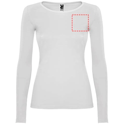 Langärmeliges, halb tailliertes T-Shirt mit feinem Halsbündchen. Keine Ärmelbündchen. Seitennähte. Herausnehmbares Etikett.