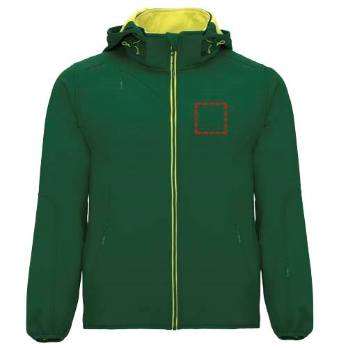 2-Lagen-Softshell mit sportlichem Schnitt, kontrastfarbigem Reißverschluss mit Kinnschutz und Zipper. Innenfutter aus kontrastfarbigem Mikrofleece. Außentasche auf der rechten Brust mit verdecktem Diagonal-Reißverschluss. Zwei Seitentaschen mit verdecktem Reißverschluss. Tasche auf dem linken Ärmel. Elastische Bündchen an Ärmeln und Saum. Einrollbare Kapuze mit kontrastfarbigem Micropolar-Futter. Herausnehmbares Etikett. Wasserabweisend. Winddicht. Das männliche Modell ist 185 cm groß und trägt Größe M, das weibliche Modell ist 174 cm groß und trägt Größe S.