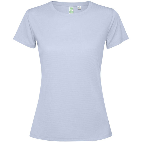 Funktions T-Shirt für Damen. Kragen mit passenden Nähten. Rückensaum etwas länger als der Frontsaum. Seitennähte nach vorne versetzt.