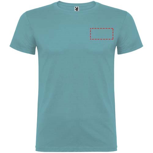 Kurzärmeliges T-Shirt mit doppellagigem Rundhalsausschnitt aus Elasthan, hergestellt aus mit Seitennähten. Verstärkte und verdeckte Nähte am Kragen. Herausnehmbares Etikett. Das Modell ist 120 cm groß und trägt Größe 5/6.