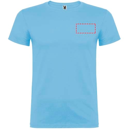 Kurzärmeliges T-Shirt mit doppellagigem Rundhalsausschnitt aus Elasthan, hergestellt aus mit Seitennähten. Verstärkte und verdeckte Nähte am Kragen. Herausnehmbares Etikett. Das Modell ist 120 cm groß und trägt Größe 5/6.