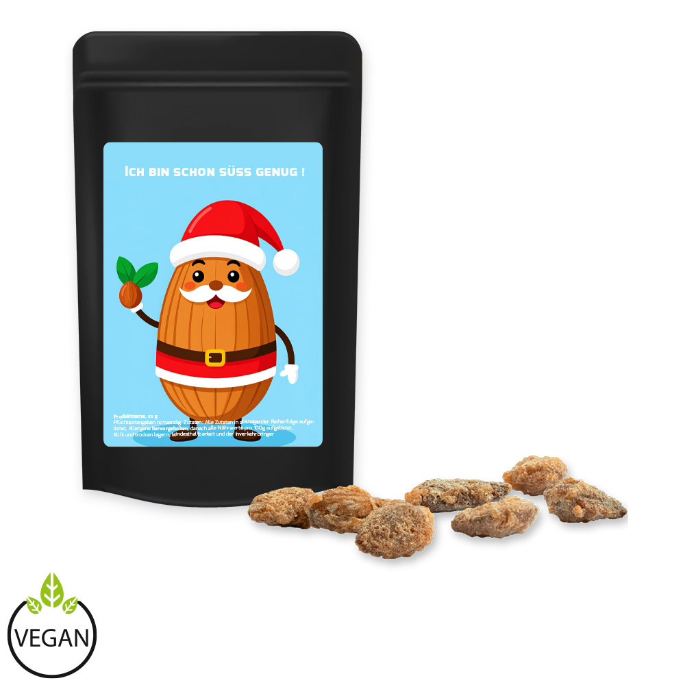 Feuergebrannte Mandeln ohne Zuckerzusatz, ca. 30g, Standbeutel Mini schwarz