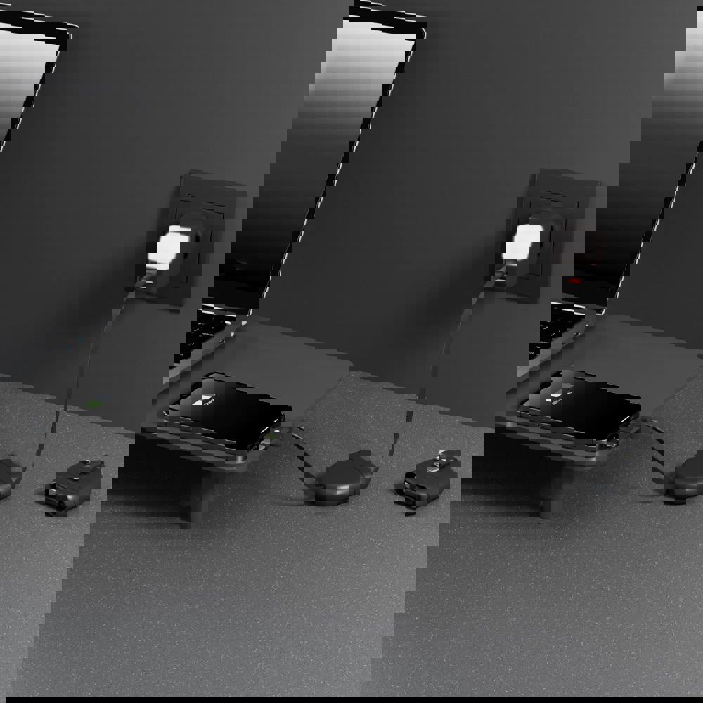Das Xoopar ICE-R ist ein 1-Meter-Kabel mit Aufrollfunktion zum schnellen und sicheren Laden von USB-C- und Lightning-Geräten. Die Ladeanzeige zeigt aktive Schnellladung an. Es ist kompakt, leicht, lässt sich einfach aus- und aufrollen und unterstützt zudem Datenübertragung.