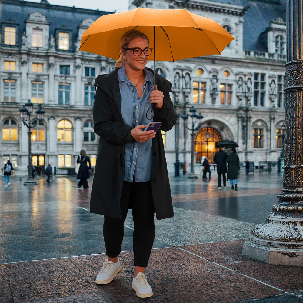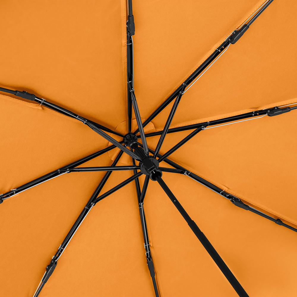 Kompakter Handöffner-Taschenschirm mit hervorragendem Preis-Leistungs-Verhältnis und Windproof-PLUS-System Einfache Handhabung durch Sicherheitsschieber, hochwertiges Windproof-PLUS-System für eine maximale Gestell-Flexibilität bei stärkeren Windböen, Soft-Feel-Griff mit elastischer Tragekordel und Werbeanbringungsmöglichkeit