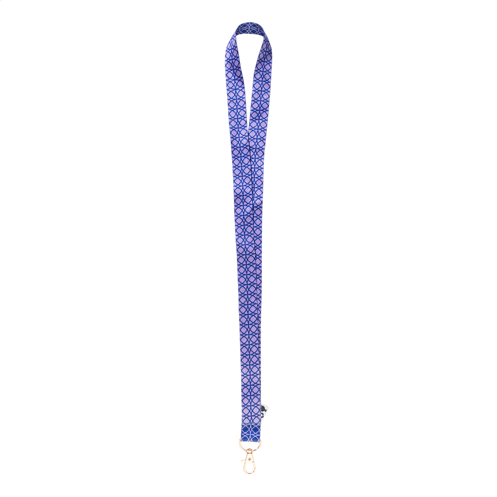 Individuelles Lanyard aus RPET mit farbigem Metallkarabiner. Der Preis ist inkl. beidseitigem Sublimationsdruck. Mindestmenge: 100 Stk.