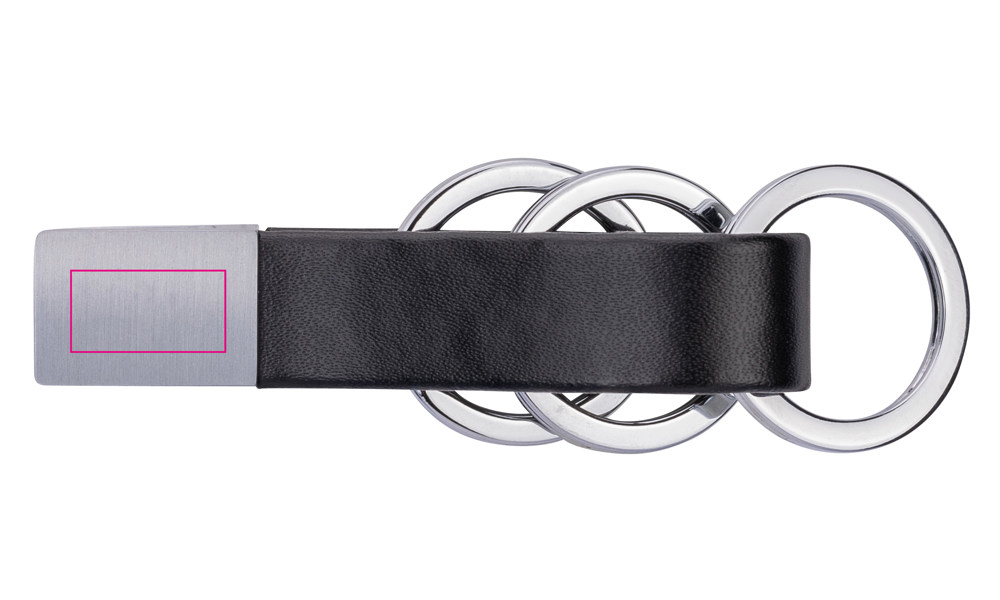 Schlüsselanhänger mit eckigem "Twist-Verschluss", Lederschlaufe, 3 Schlüsselringe, Leder/Metall, schwarz