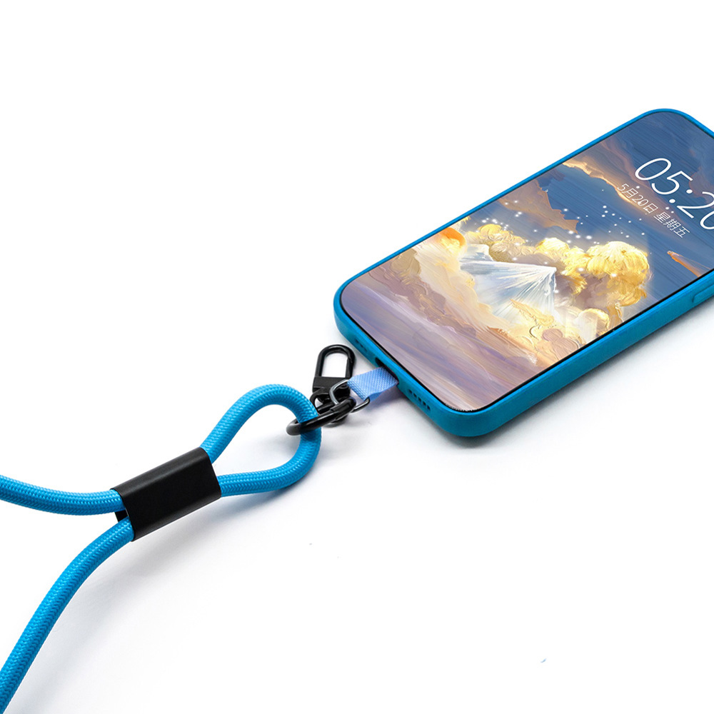 Farbenfrohes Lanyard-Ladekabel mit Smartphone Halterung. USB Type-C auf Type-C Anschluss + Apple Lightning Adapter. Schnelles Laden und Datentransfer mit bis zu 5A /100W. Anhänger mit Lightning Adapter für Apple im Preis enthalten Die Werbeanbringung erfolgt auf dem Metallschieber und optional auf der Smartphone Halterung.