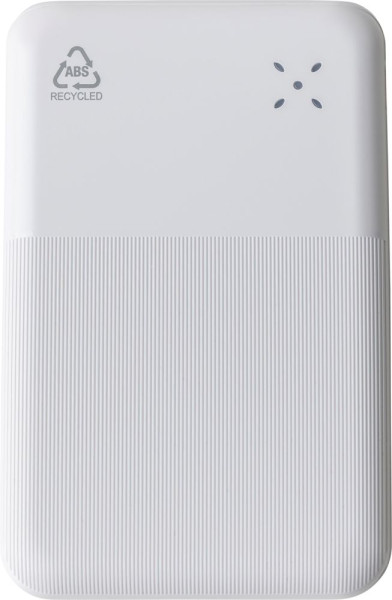 Powerbank aus recyceltem ABS mit 10.000 mAh Lithium-Ionen-Akku und 22,5 W Schnellladefunktion. Mit Typ-C-Ein- und -Ausgang sowie Typ-A-Eingang. Das Gehäuse besteht zu einem Drittel aus glatter Oberfläche für Drucke und zu zwei Dritteln aus strukturiertem Relief. Die digitale Anzeige auf der Oberseite zeigt die Akkukapazität an. Schützt vor Überhitzung, Kurzschluss, Überspannung und Überstrom. Auf der Rückseite befindet sich ein Etikett mit dem Logo aus recyceltem ABS. Einzeln verpackt in einem braunen Karton mit Seidenpapier.