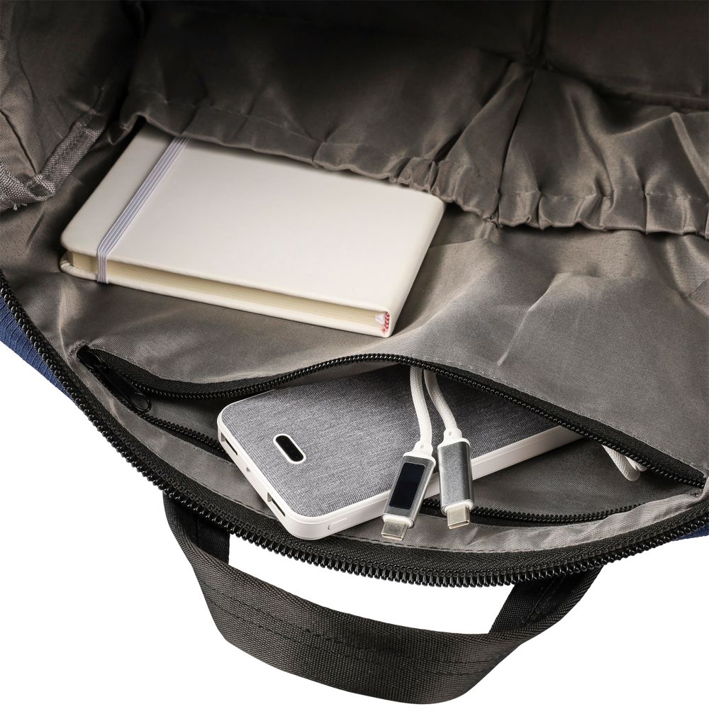 Die Ocean Bound Sporttasche besteht aus rPET 300D Polyester, einem zu einem strapazierfähigen Stoff mit strukturierter Oberfläche verwebten Material aus recyceltem Plastikmüll aus dem Meer. Sie bietet ein Fassungsvermögen von 33,7 Litern, verfügt über ein großes Hauptfach, eine kleinere Fronttasche sowie eine Innentasche jeweils mit Reißverschluss. Dank der zwei stabilen Tragegriffe und des verstellbaren Schultergurts ist sie vielseitig einsetzbar. Sie ist außen mit einem „Ocean Bound Plastic“-Label und innen mit einem Konformitätsetikett versehen.