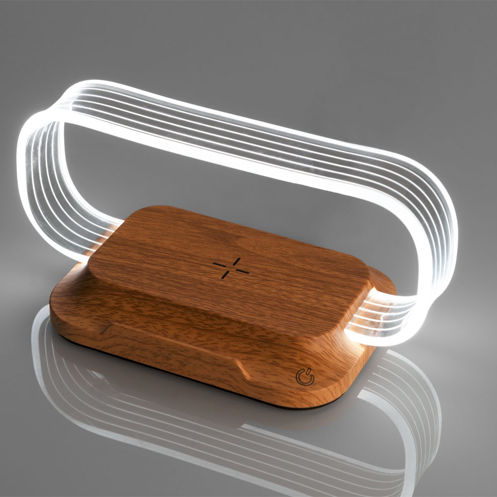 Eleganter Telefonständer von Pierre Cardin mit drahtloser Ladefunktion (15 W). Der Ständer ist aus einer Holzimitation gefertigt , die ihm ein luxuriöses Aussehen verleiht. Es umfasst einen Kunststoffrahmen mit 3 Farbtönen. Eingang mit USB Typ-C 9V2A. Verpackt in einer Pierre Cardin Luxus Box, versendet mit Echtheitszertifikat.