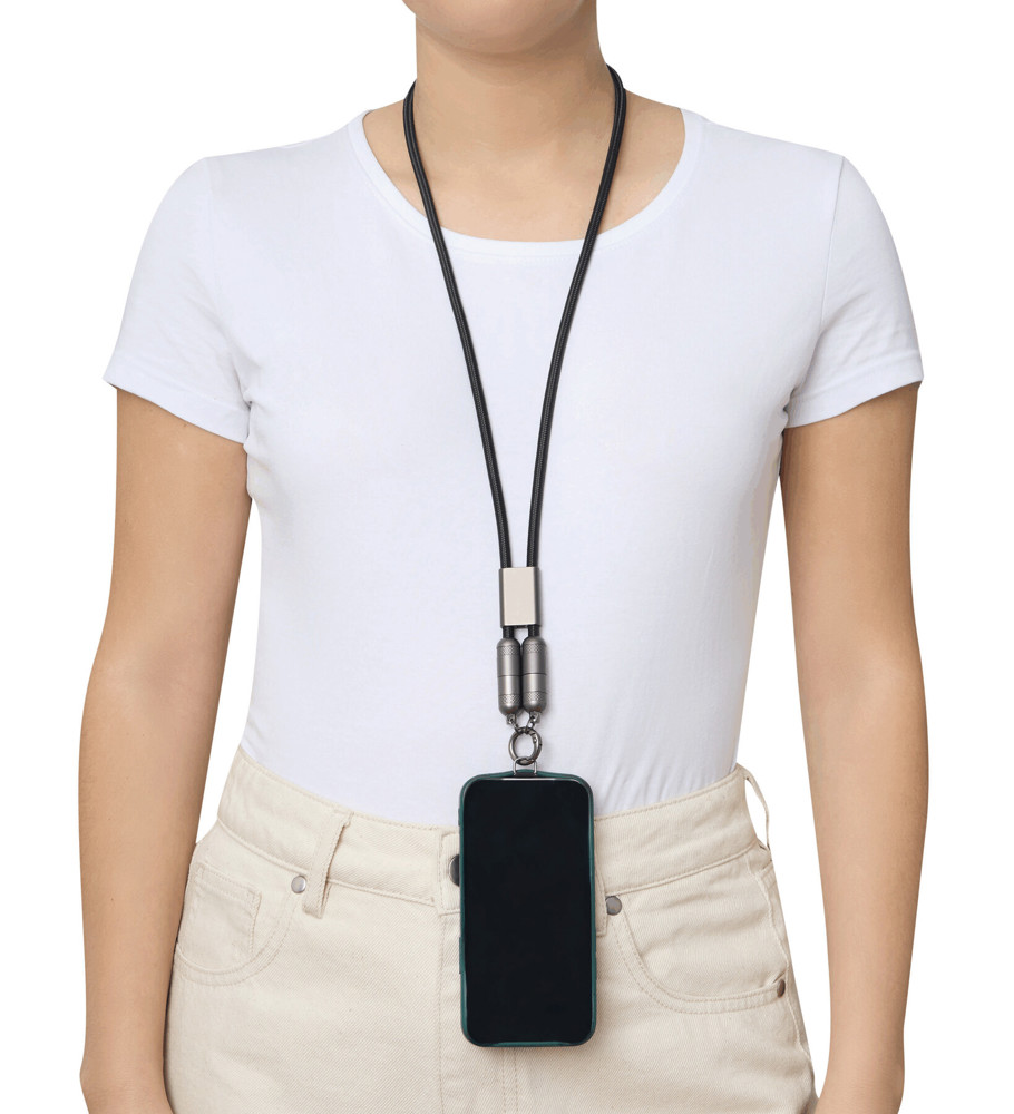 Lade- und Datenkabel LONGCARRY: zum Aufladen von Smartphones und USB-betriebenen Geräten, inkl. Laptops (65 W Leistungsübertragung), sowie zum Übertragen von Daten, inkl. 2 Ladesteckern (USB Typ C), Kabellänge ca. 108 cm, Lade- und Datenkabel ist gleichzeitig Handykette, mit Halteplättchen zum Platzieren zwischen Smartphone und Handyhülle (nur geeignet für Hüllen, die einen umlaufenden Schutz bieten), inkl. Karabinerhaken (der Karabiner ist NICHT als Sicherung beim Klettern geeignet)