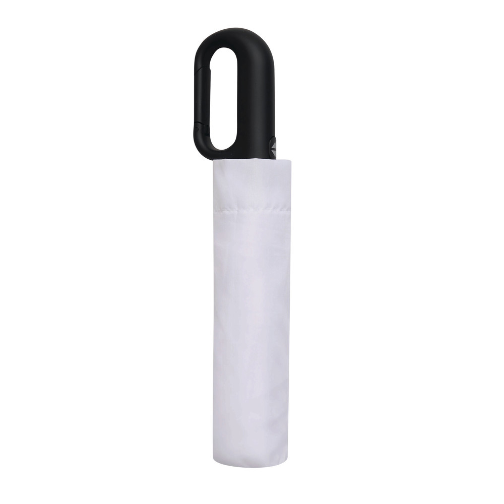 Vollautomatischer Windproof-Taschenschirm SCIROCCO in farblich abgestimmtem Futteral: 3-teiliger Metallstock, mit Metall-Fiberglasspeichen und Metalltips, schwarzer gummierter Karabiner-Kunststoffgriff, Polyester-Pongee-Bespannung aus recycelten Kunststoffen / RPET, Schließband mit Klettverschluss